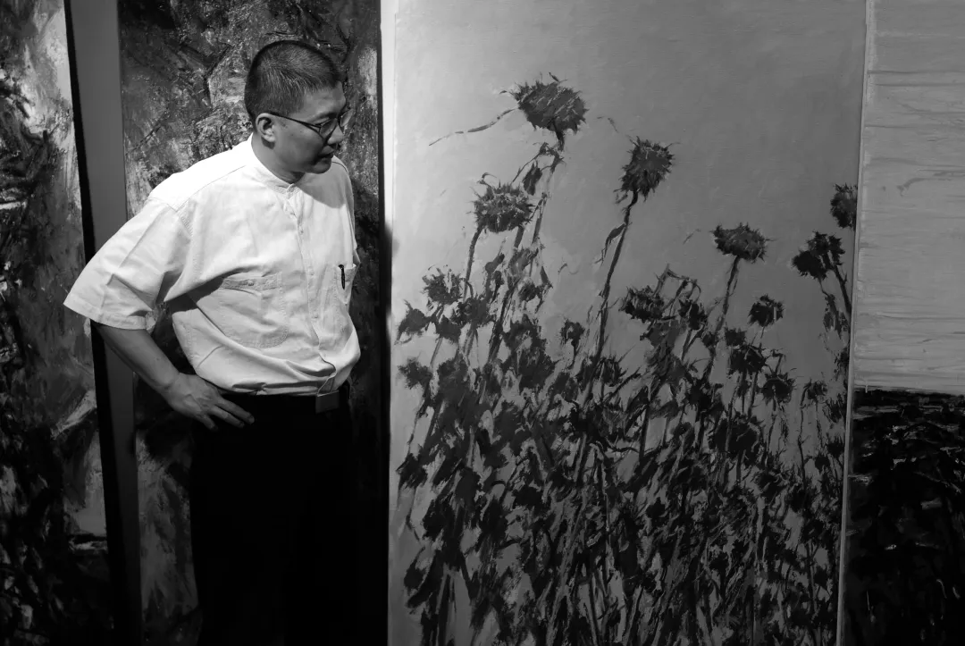 万千葵株,俯仰天地,倔强生长,又终归寂然。葵就是太阳辉映下的众生。仰日即是仰心,画葵即是画人。画向阳花开的一代人。这代人经历了荒芜的少年,经历了骤然变化又不断被开放和点亮的新时期,人生也随之被开放和点亮。今天,那生命的葵盘,既饱含沧桑,又怀抱理想;既充满记忆,又充满坚守与追求。
