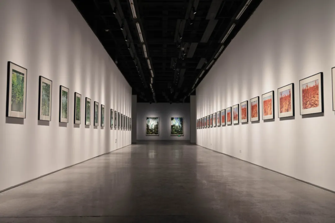 “念山”板块,展出系列油画作品近180幅:《江水泱泱》将逝者如斯的咏叹被转化为生命汹涌的宣言;在《云山苍苍》中,可见凝固的雷声、大地凸起的筋骨;《龙泉苍松》尽显坚劲,《大树参天》吐纳雄浑;《十里银杏》璀璨如金,《神仙山居图》超然物外;最终,《谿山新旅图》带领观者完成一场贯穿古今的精神行旅。